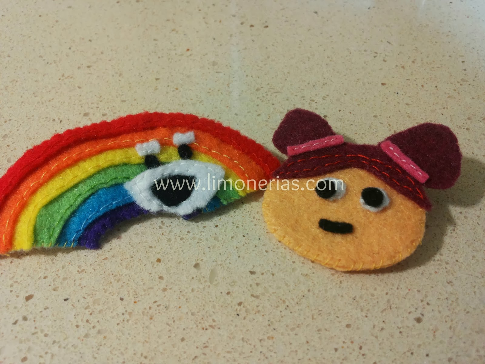 Les preparé un broche a cada uno, uno de Don Iris, que la pitufina dijo que era para Juan "D", y uno del Hada Mariana, que dijo que era para Beatriz.